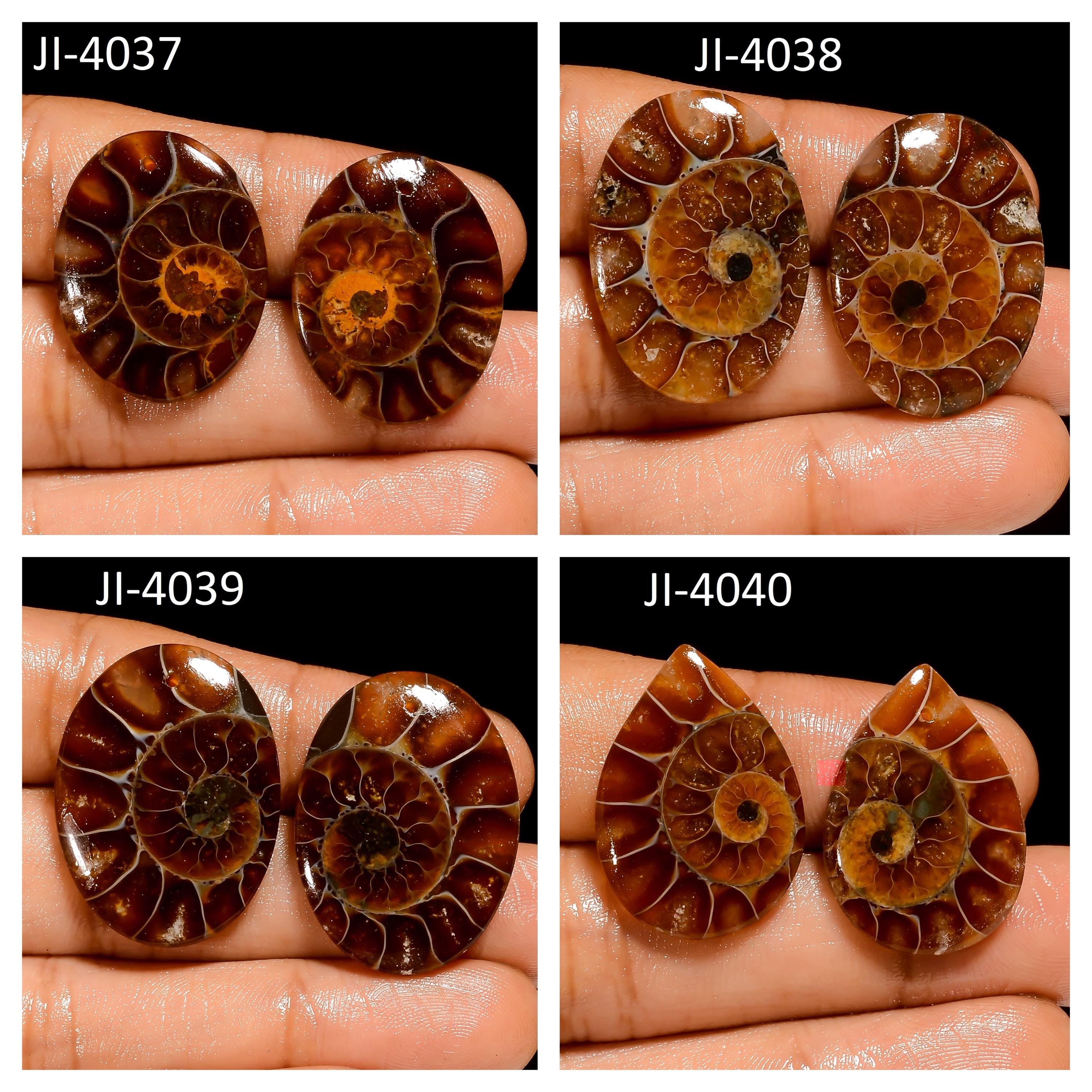 -Ammonite fancy shape drilled cabochon matching pairs-this listing is for a set of two cabochons-stones are flat on the back-Ammonite is a natural stone, no treatment