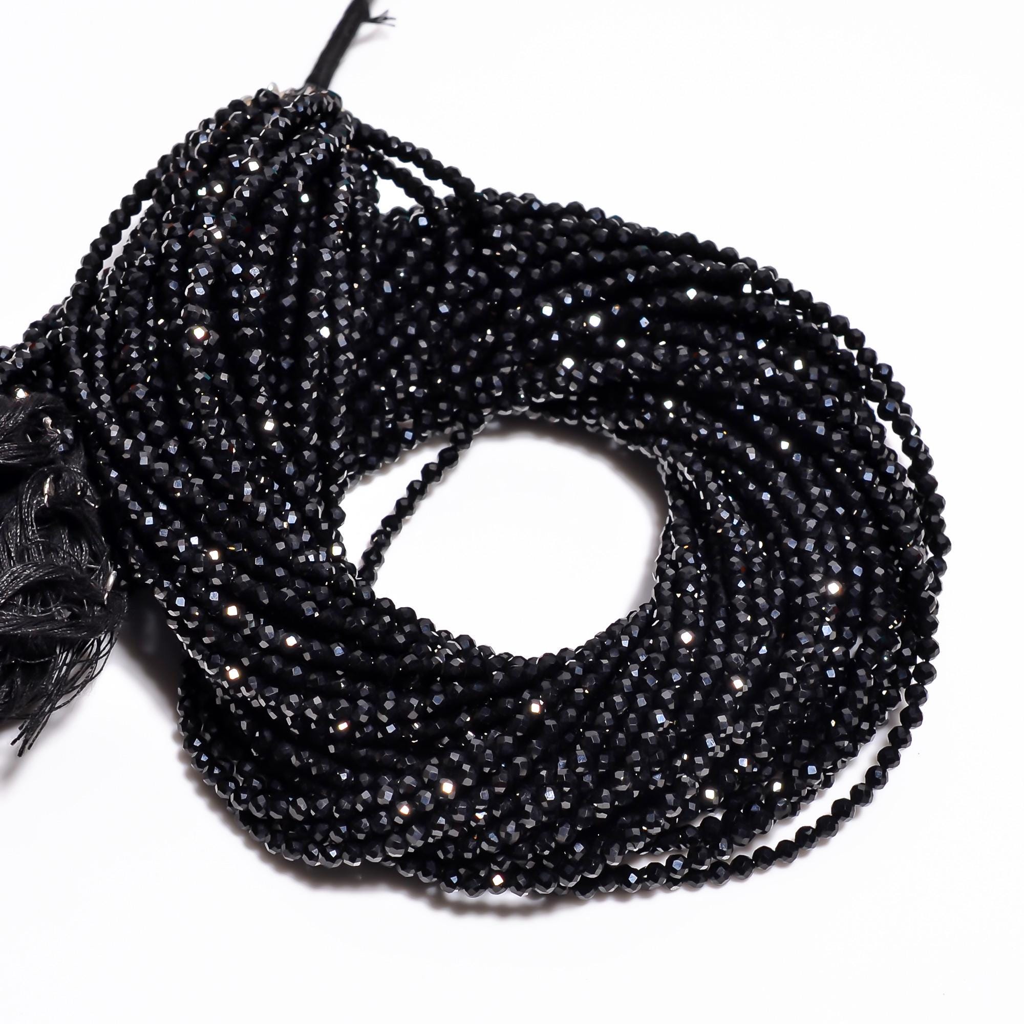 -Black Spinel faceted round shape-bead size is from 3.05 to 3.15mm-hole size of bead is about .50mm-strand length is 13 inches-this listing is for one strand-Black Spinel is a natural stone, no treatment
