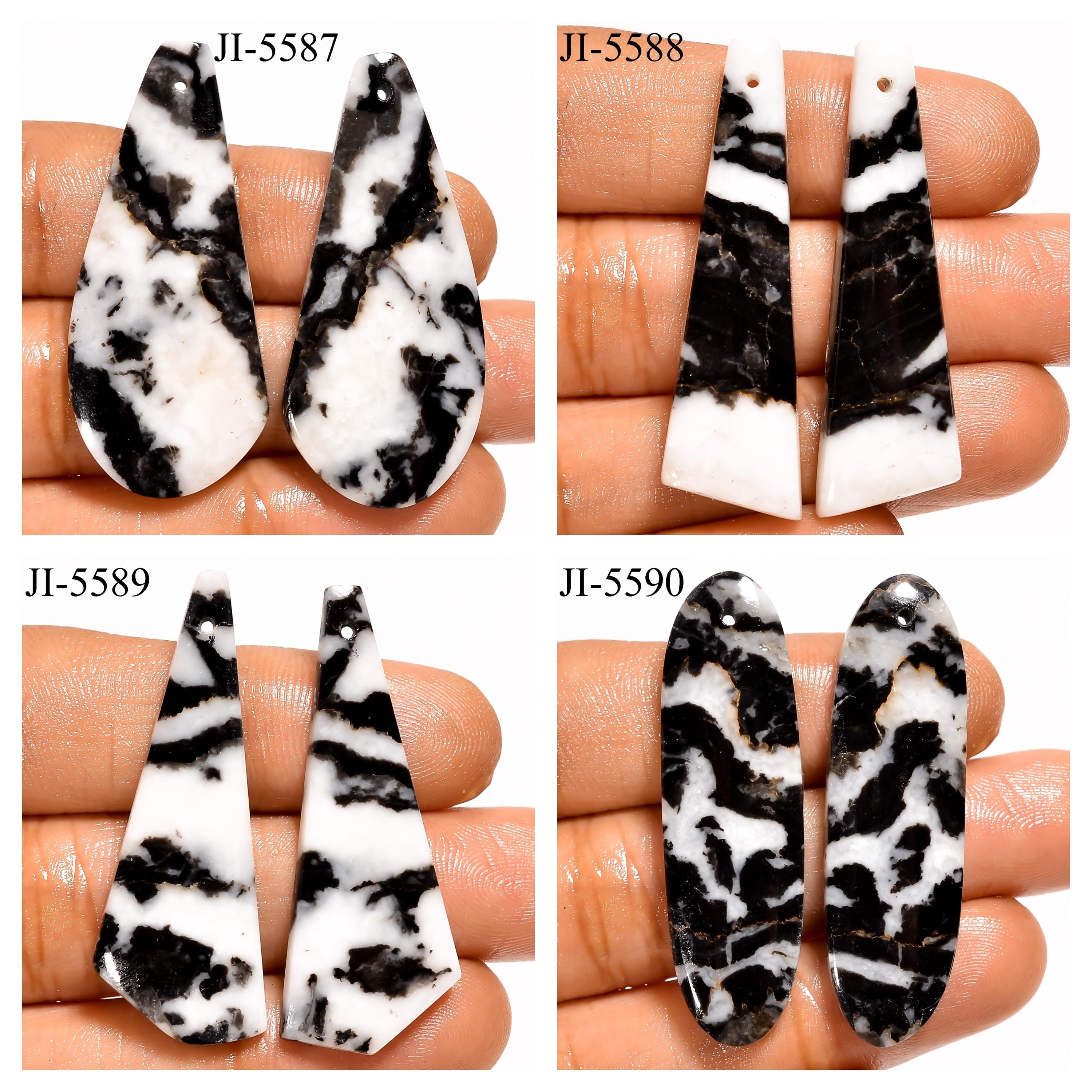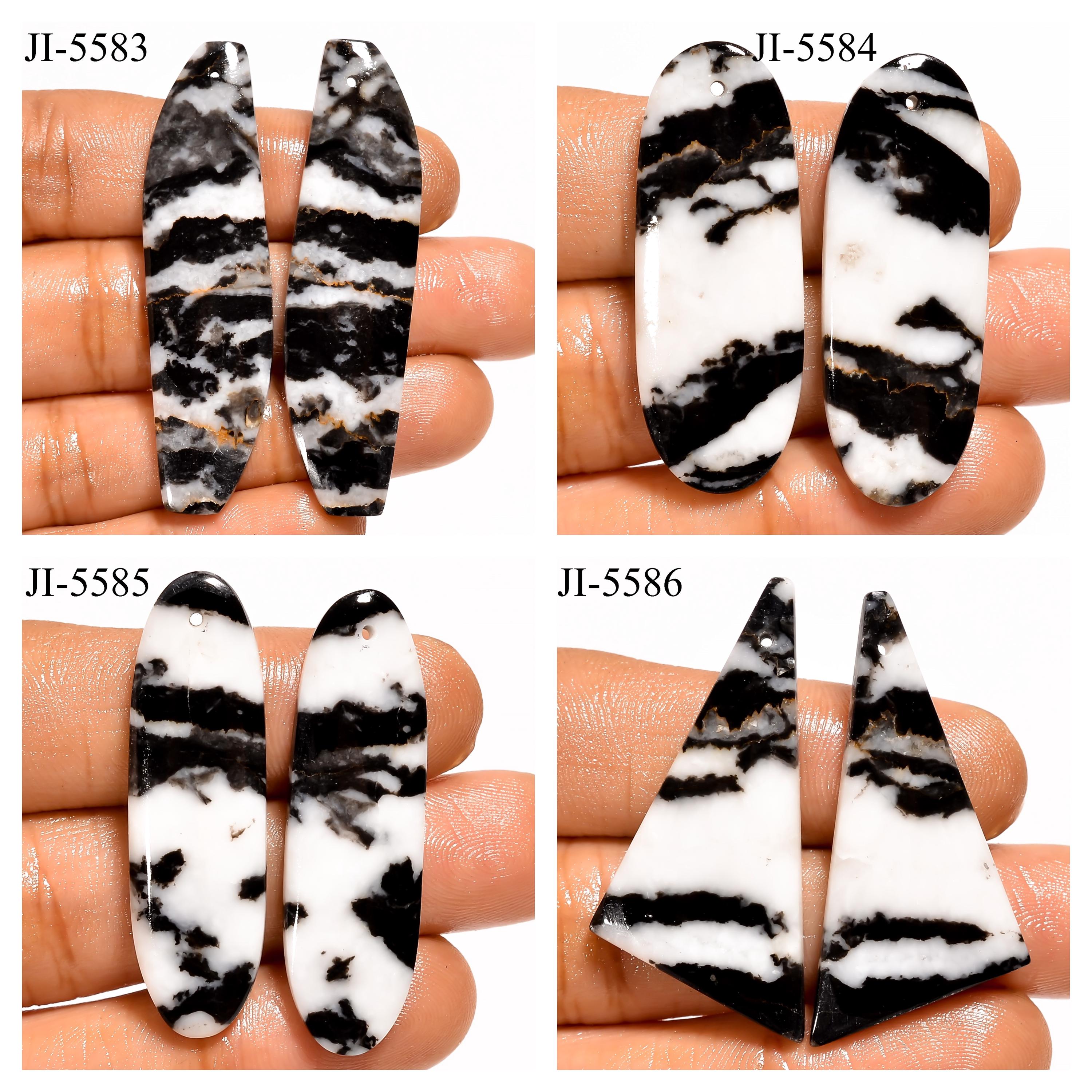 -Zebra Jasper fancy shape drilled cabochon matching pairs-this listing is for a set of two cabochons-stones are flat on the back-Zebra Jasper is a natural stone, no treatment