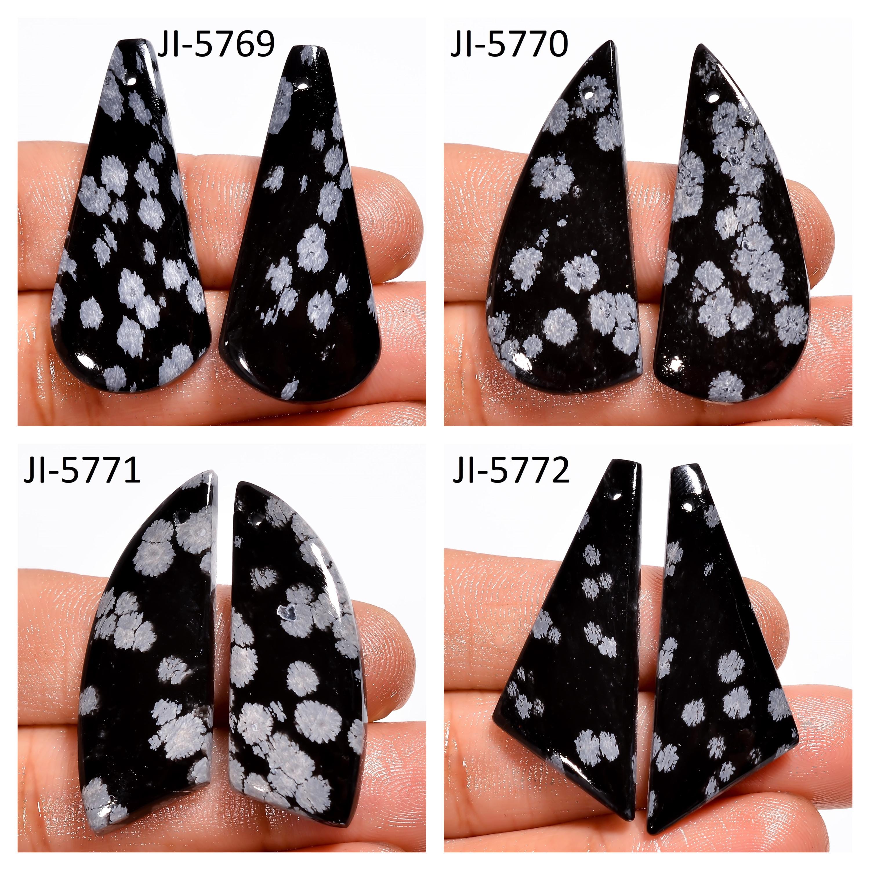 -Snowflake Obsidian fancy shape drilled cabochon matching pairs-this listing is for a set of two cabochons-stones are flat on the back-Snowflake Obsidian is a natural stone, no treatment