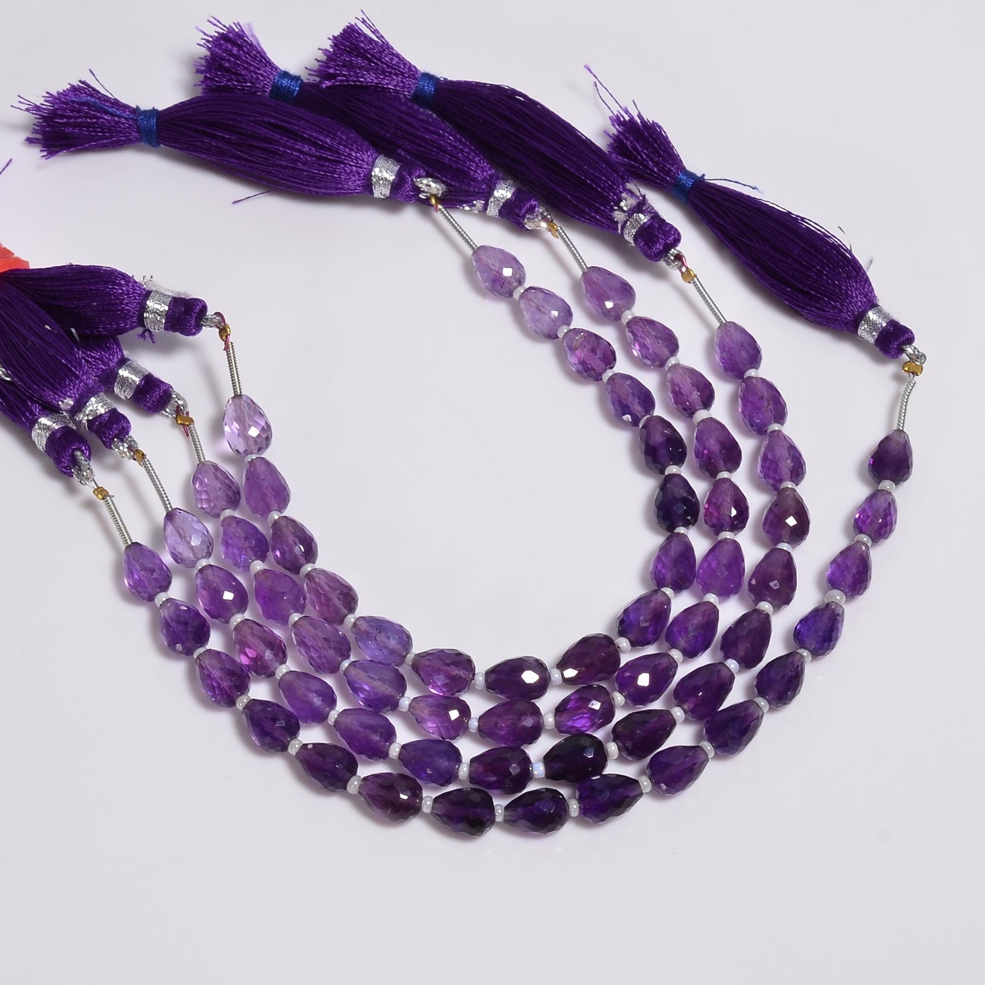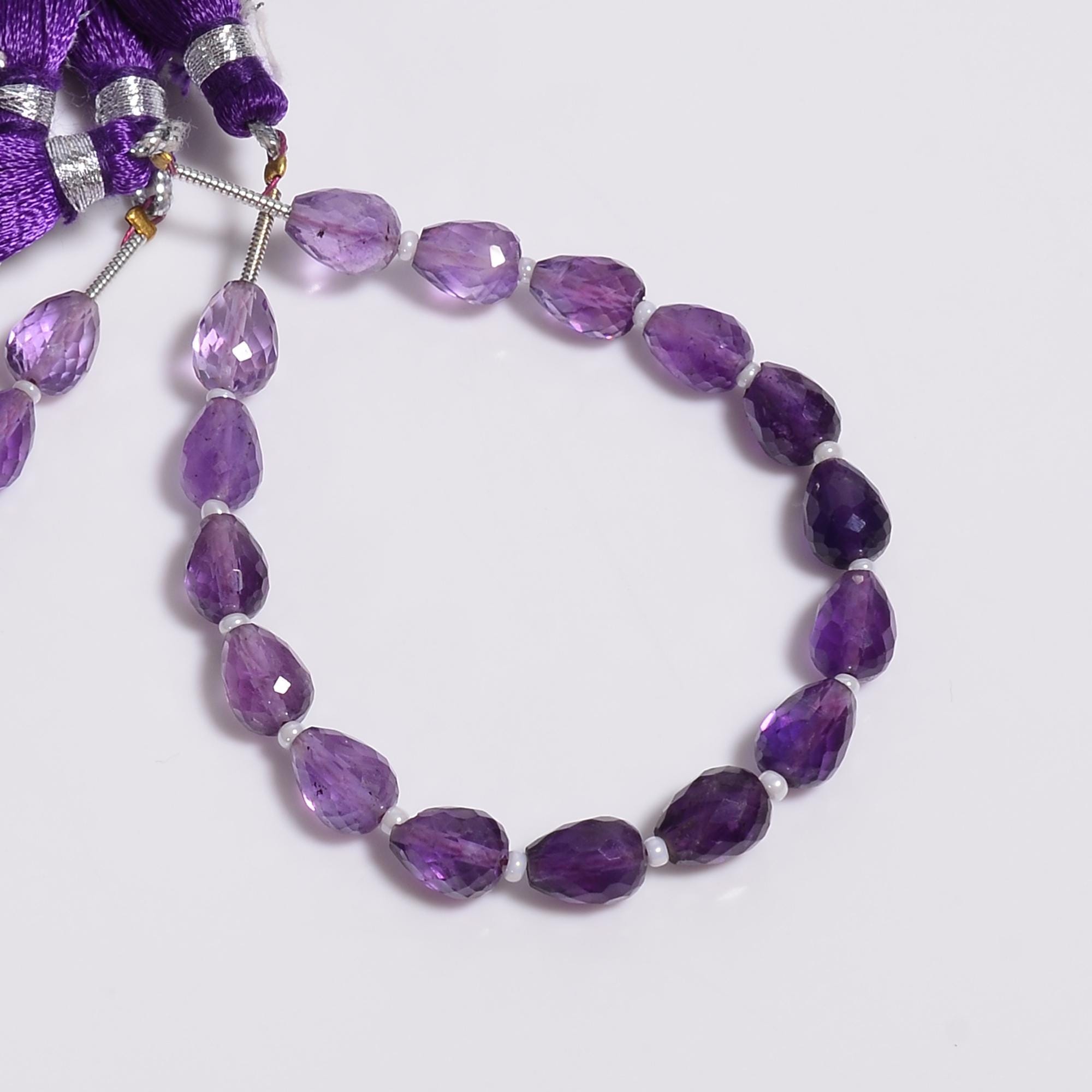 -Amethyst faceted teardrop shape-bead size is 6mm x 8mm-hole size of bead is about .30mm-strand length is 6 inches-16 beads per strand-this listing is for one strand-Amethyst is a natural stone, no treatment