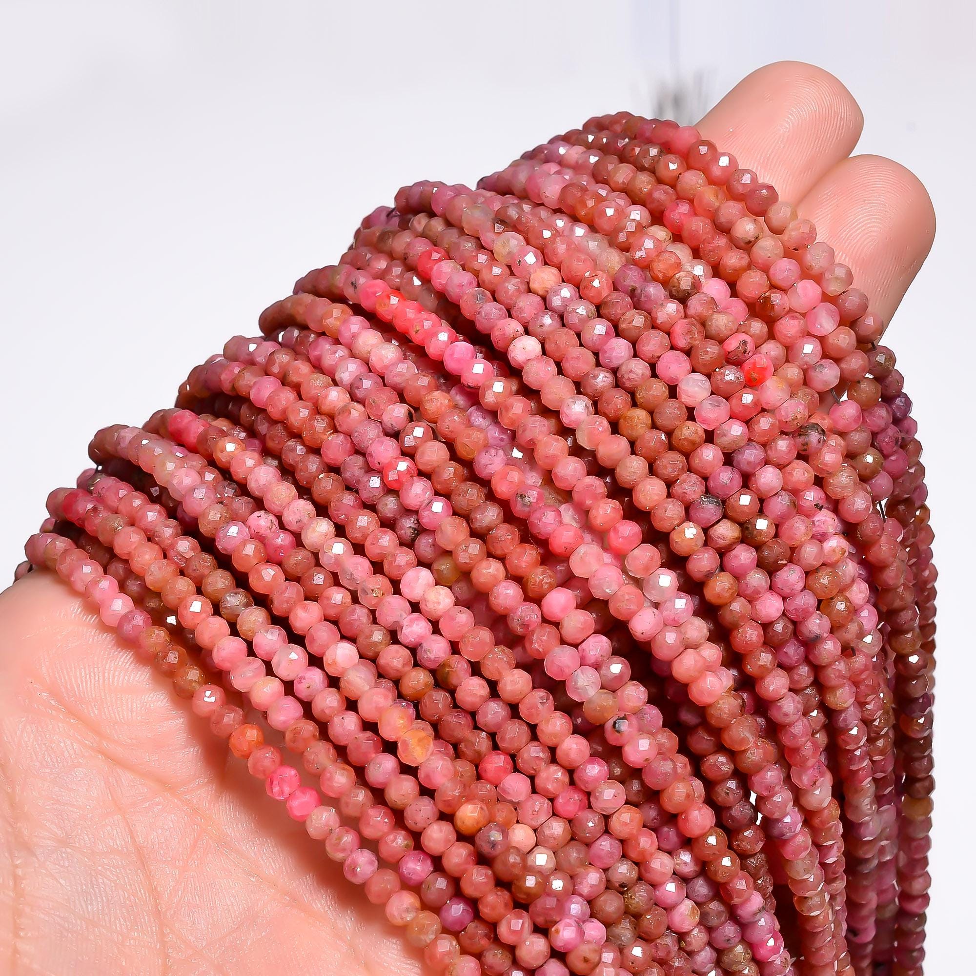 -Rhodochrosite micro faceted rondelle shape