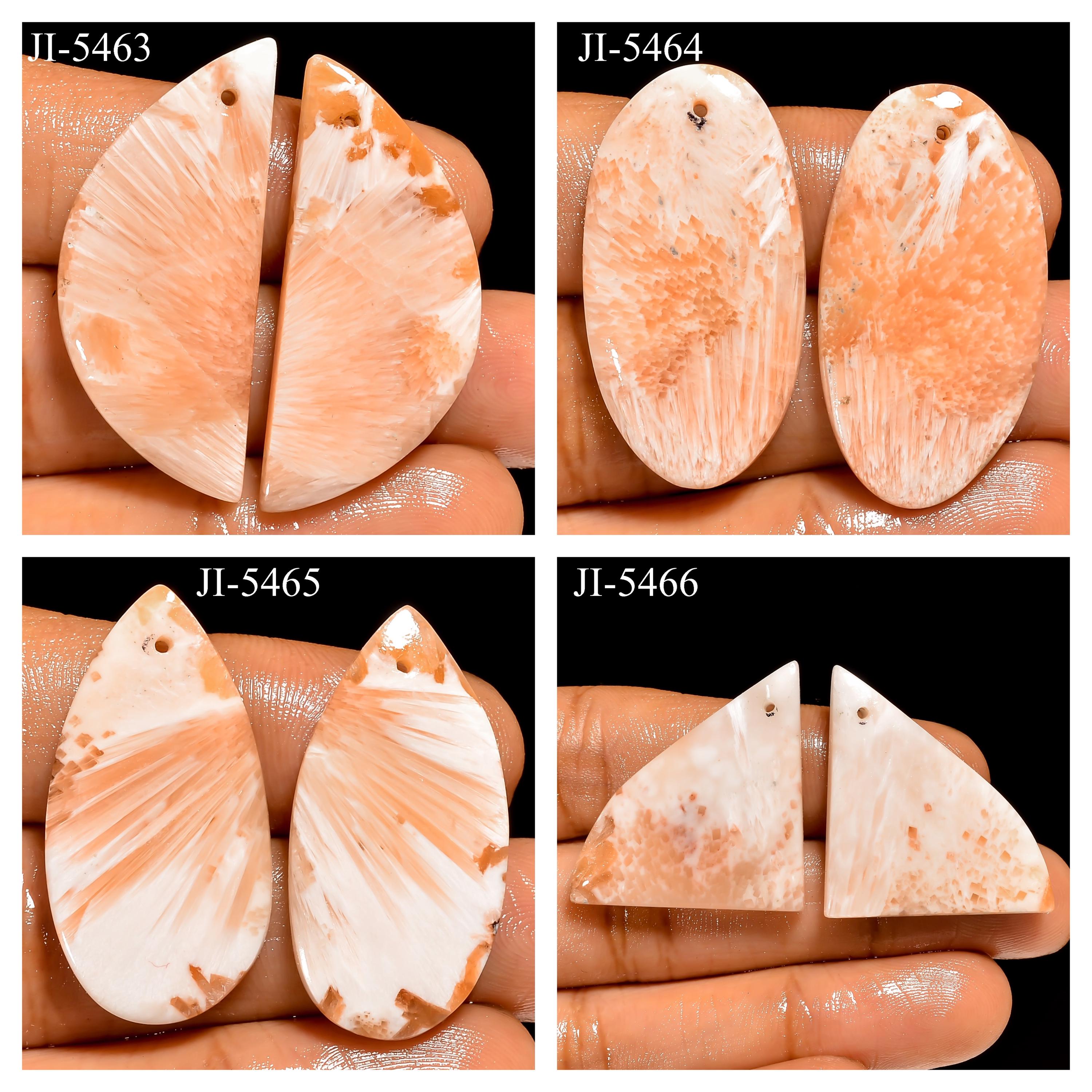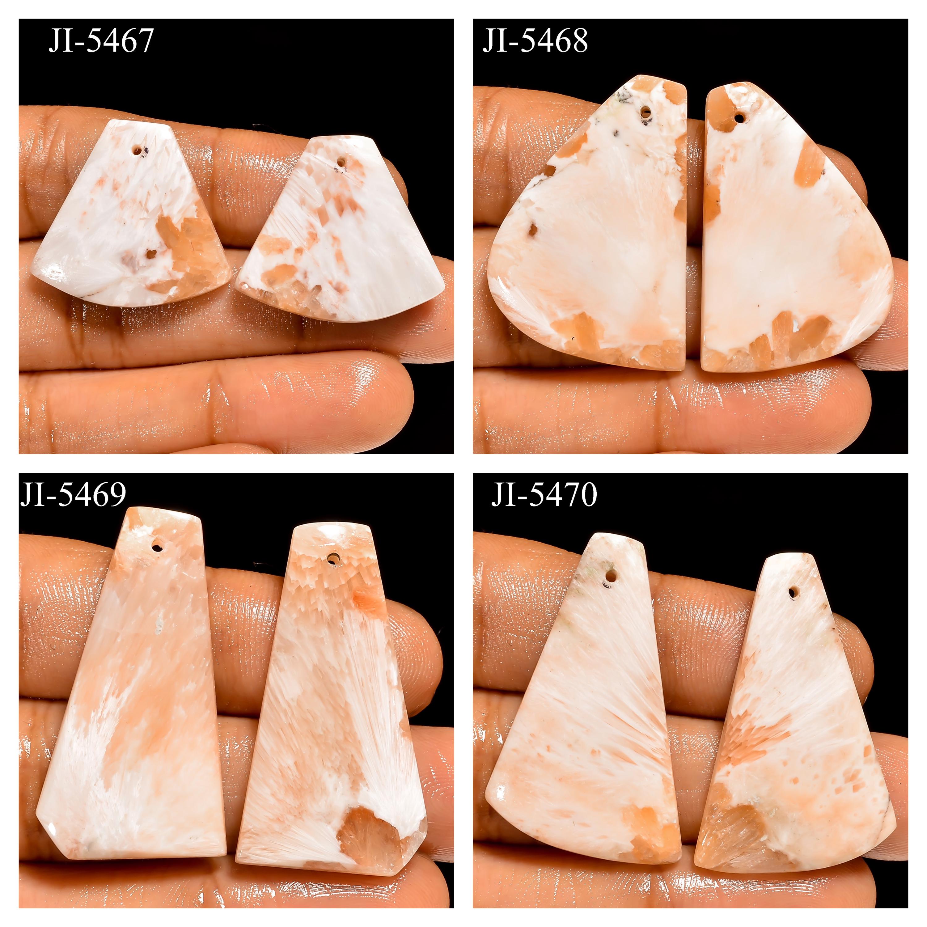 -Scolecite fancy shape drilled cabochon matching pairs-this listing is for a set of two cabochons-stones are flat on the back-Scolecite is a natural stone, no treatment