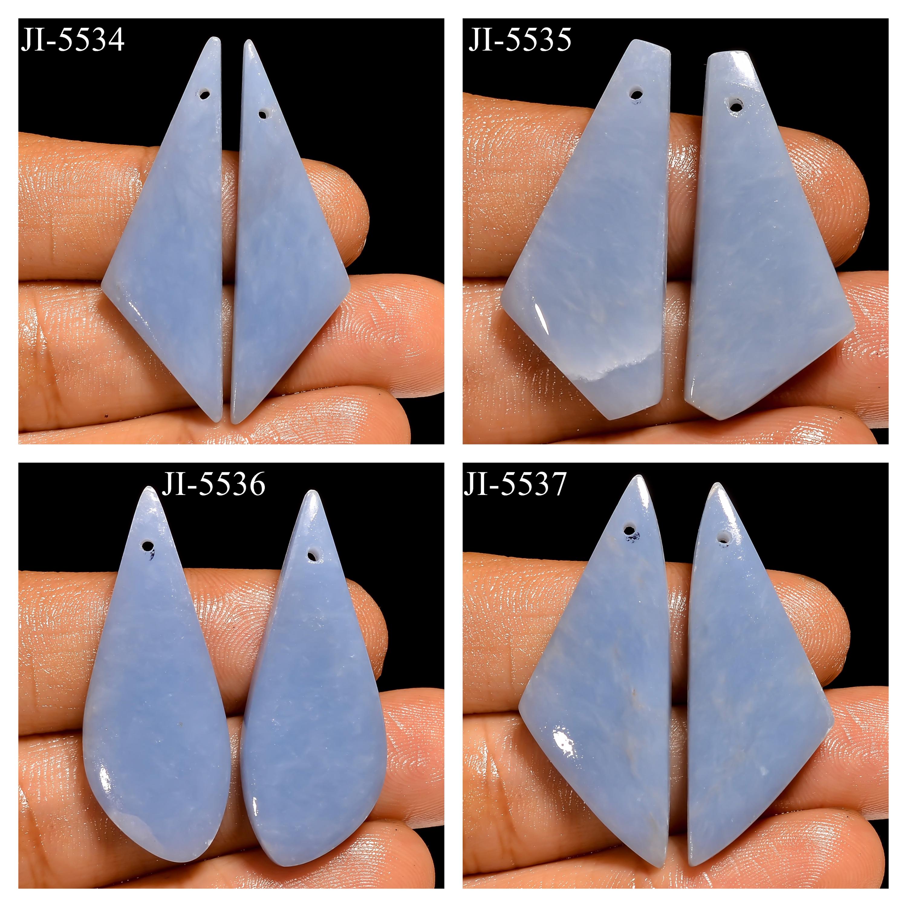 -Angelite fancy shape drilled cabochon matching pairs-this listing is for a set of two cabochons-stones are flat on the back-Angelite is a natural stone, no treatment
