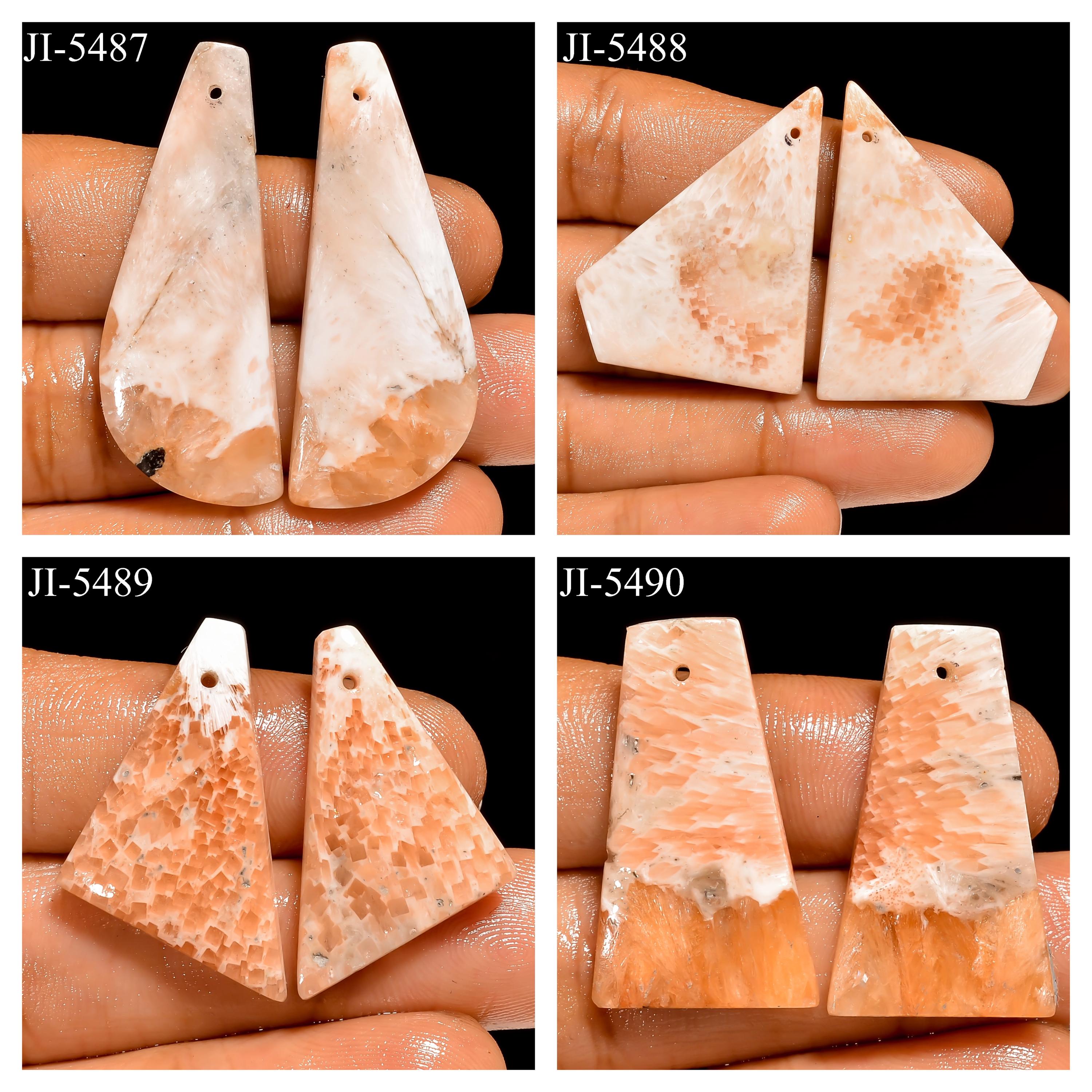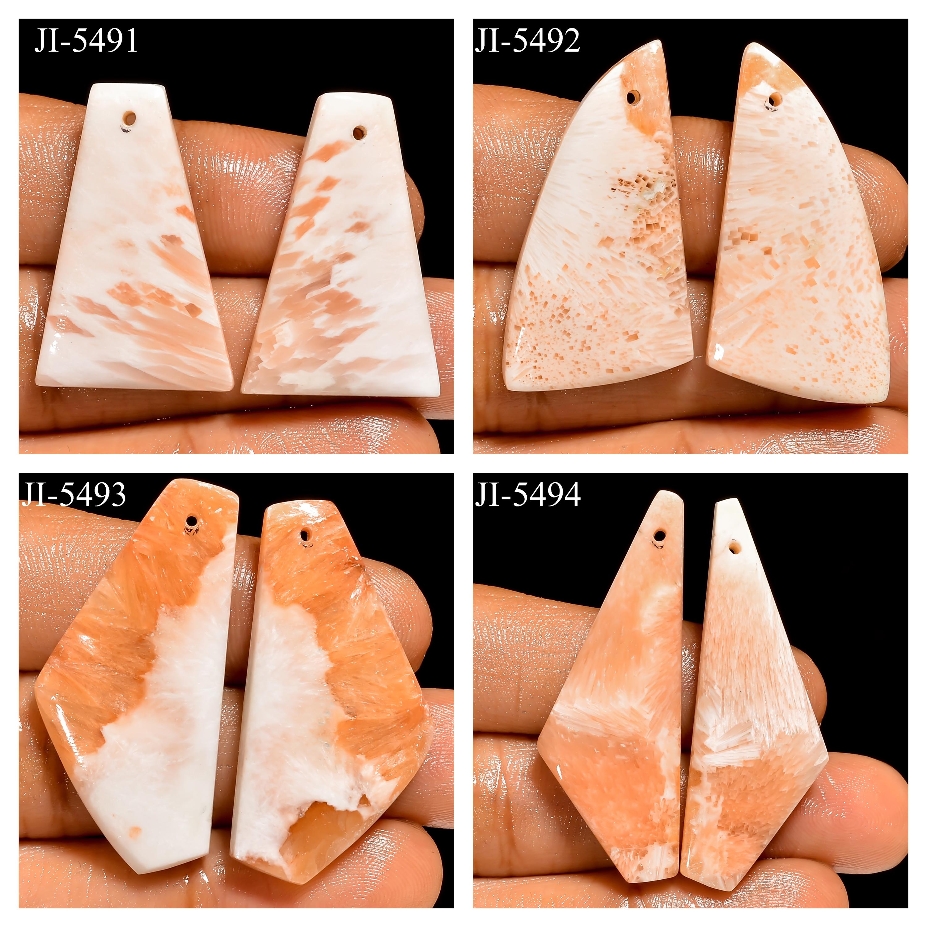 -Scolecite fancy shape drilled cabochon matching pairs-this listing is for a set of two cabochons-stones are flat on the back-Scolecite is a natural stone, no treatment