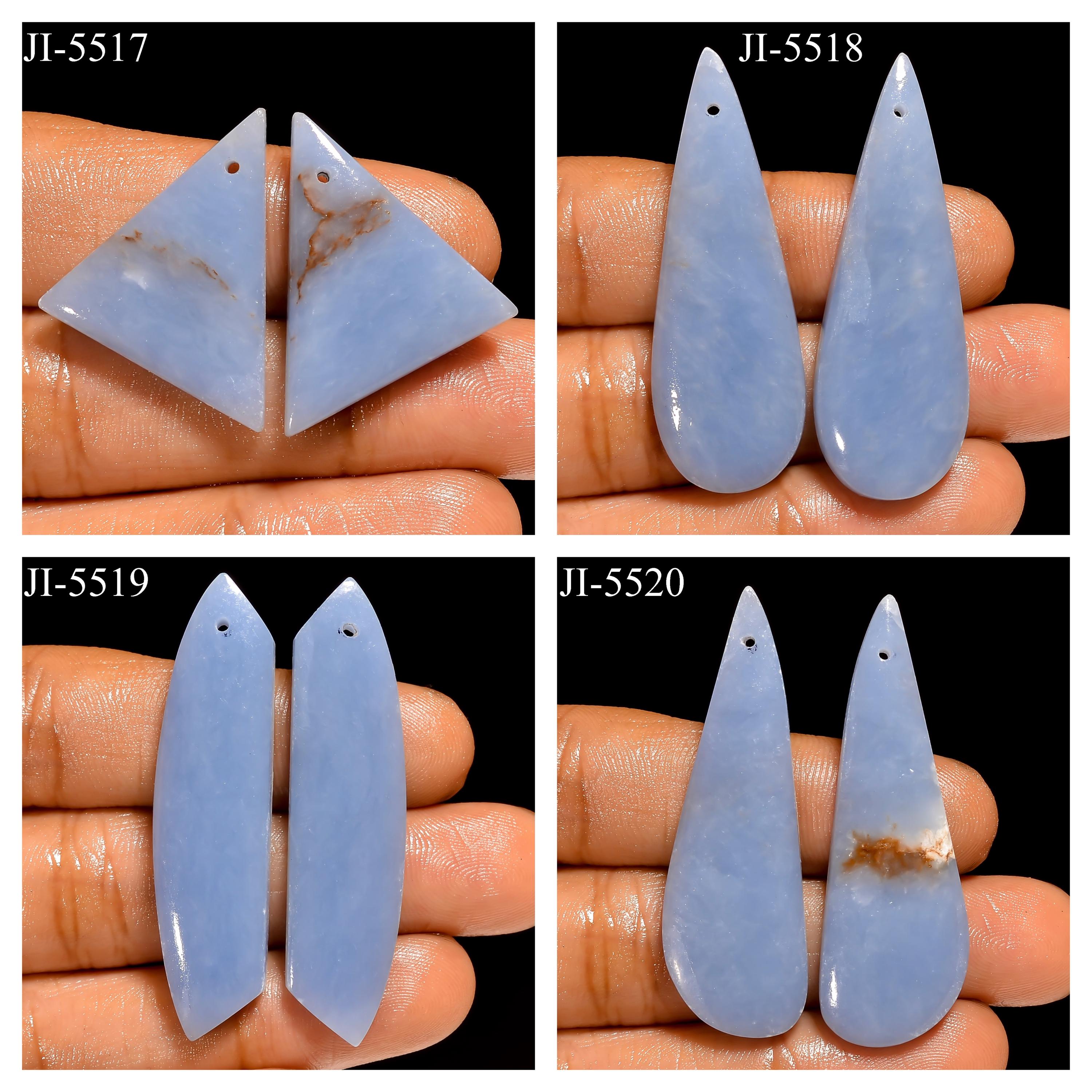 -Angelite fancy shape drilled cabochon matching pairs-this listing is for a set of two cabochons-stones are flat on the back-Angelite is a natural stone, no treatment
