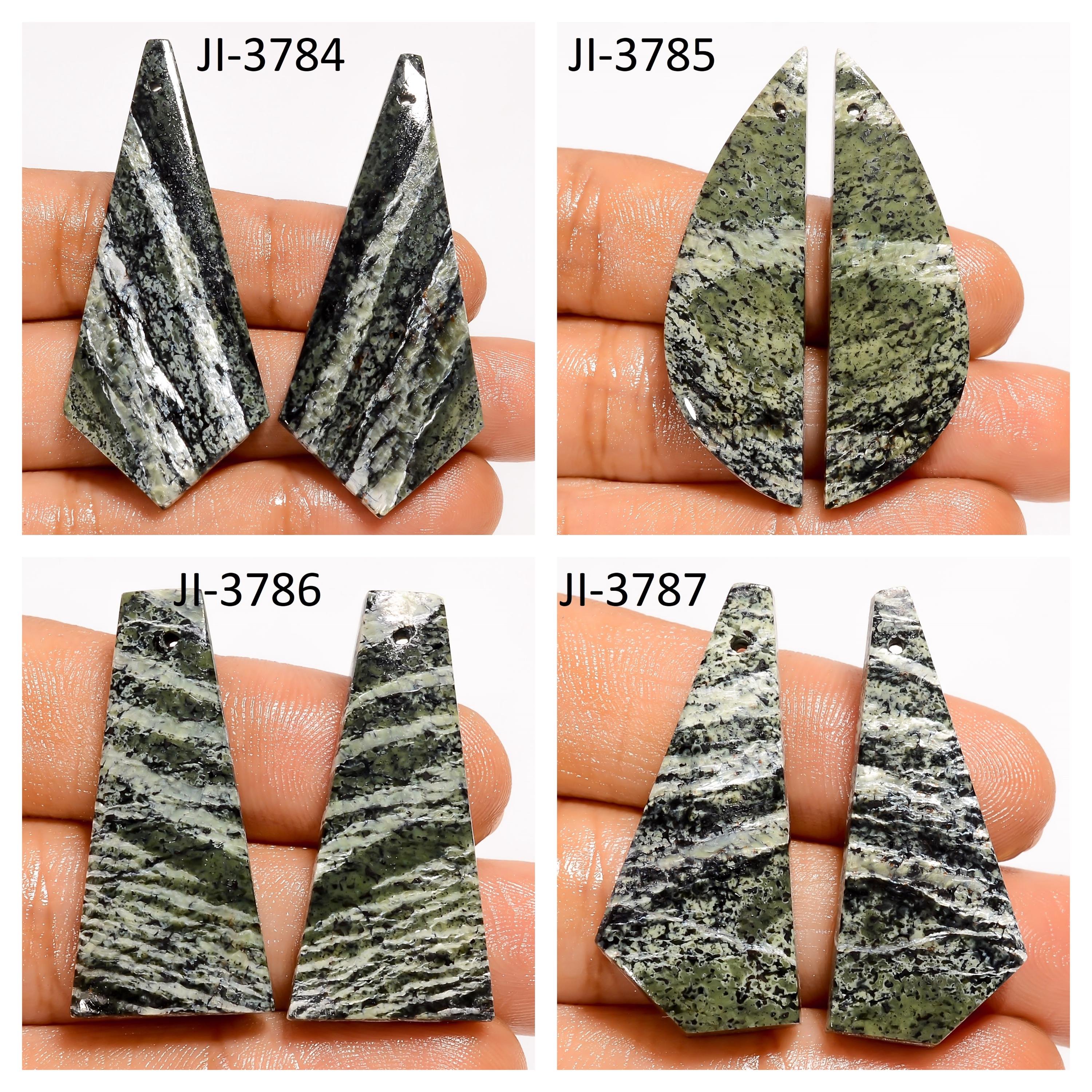 -Swiss Green Opal fancy shape drilled cabochon matching pairs-this listing is for a set of two cabochons-stones are flat on the back-Swiss Green Opal is a natural stone, no treatment