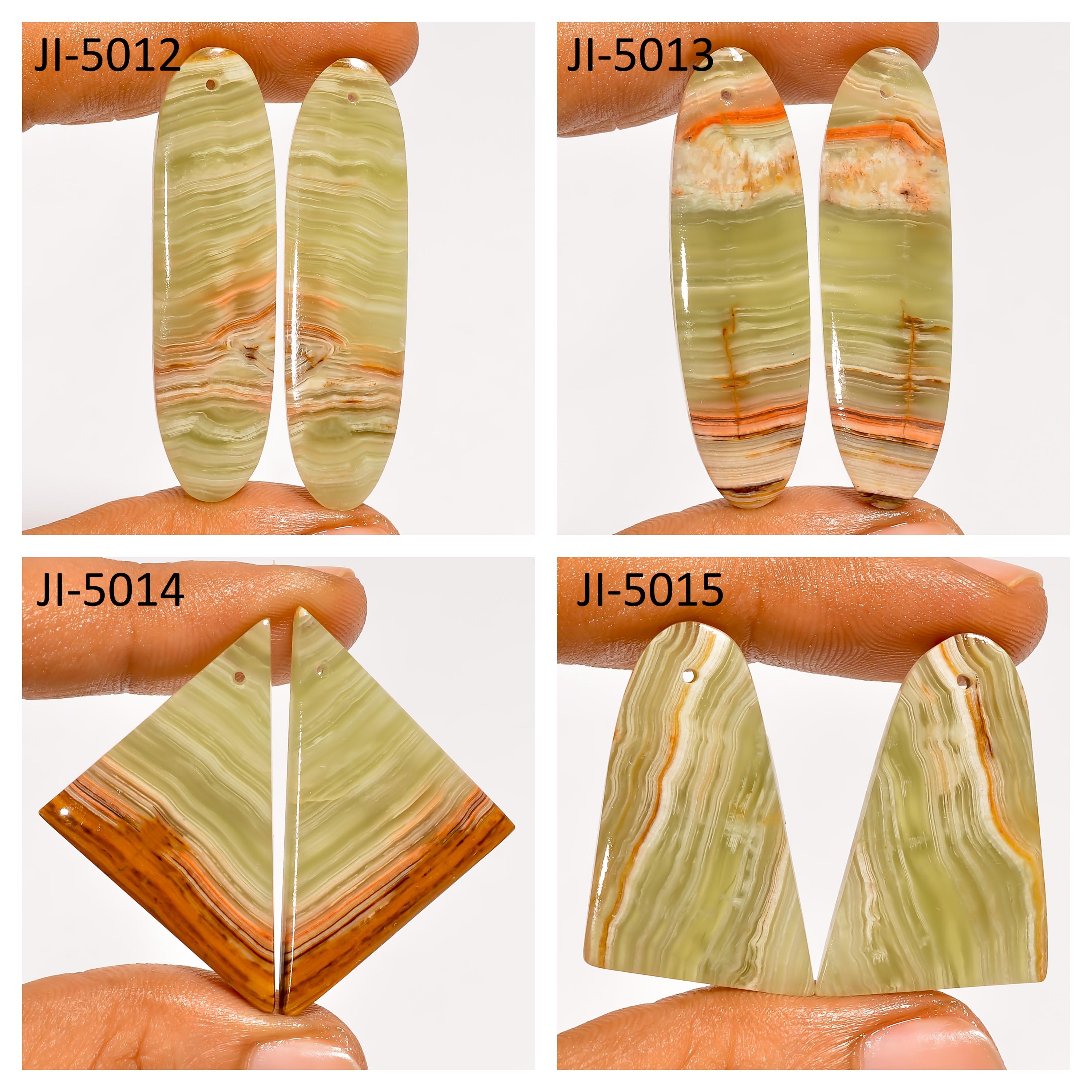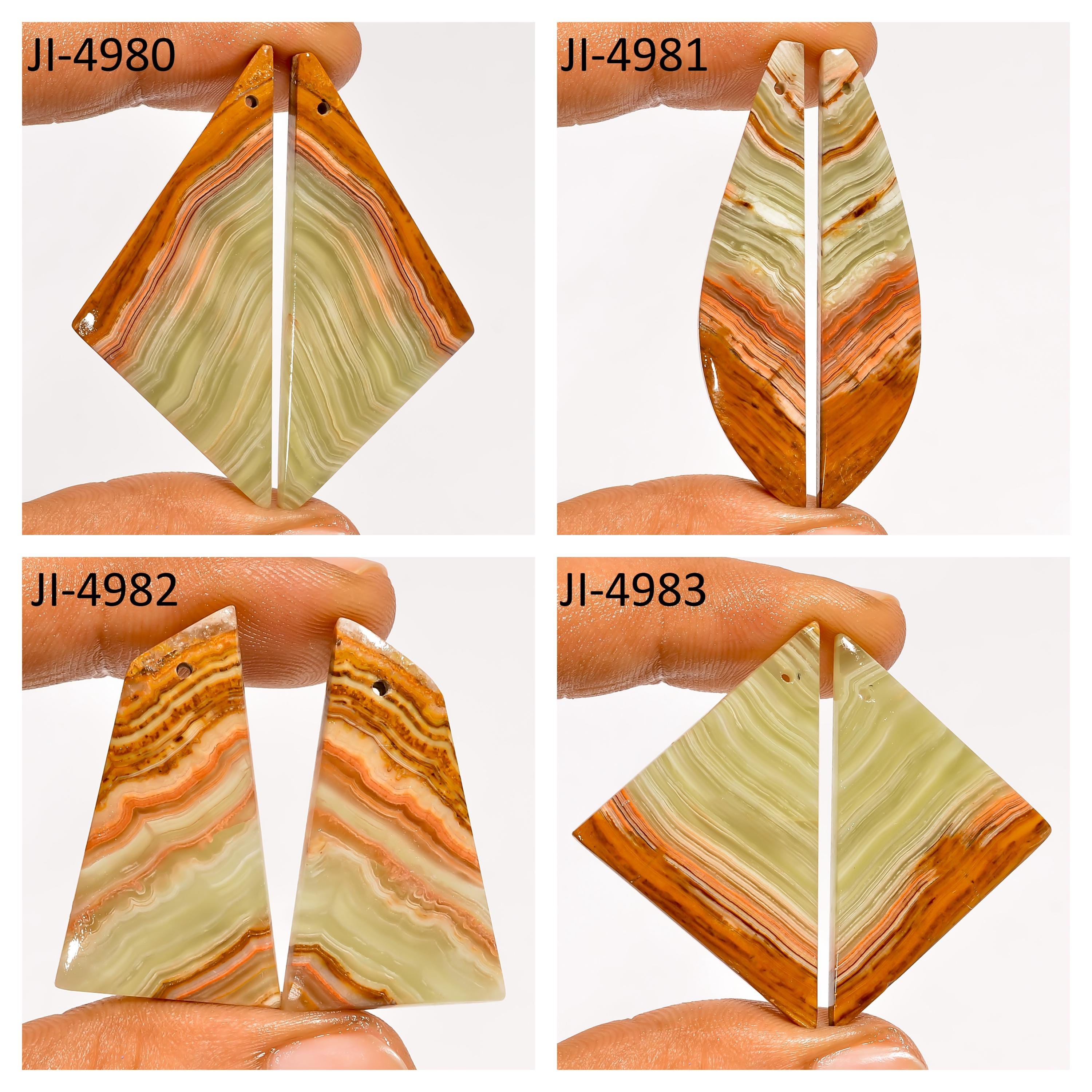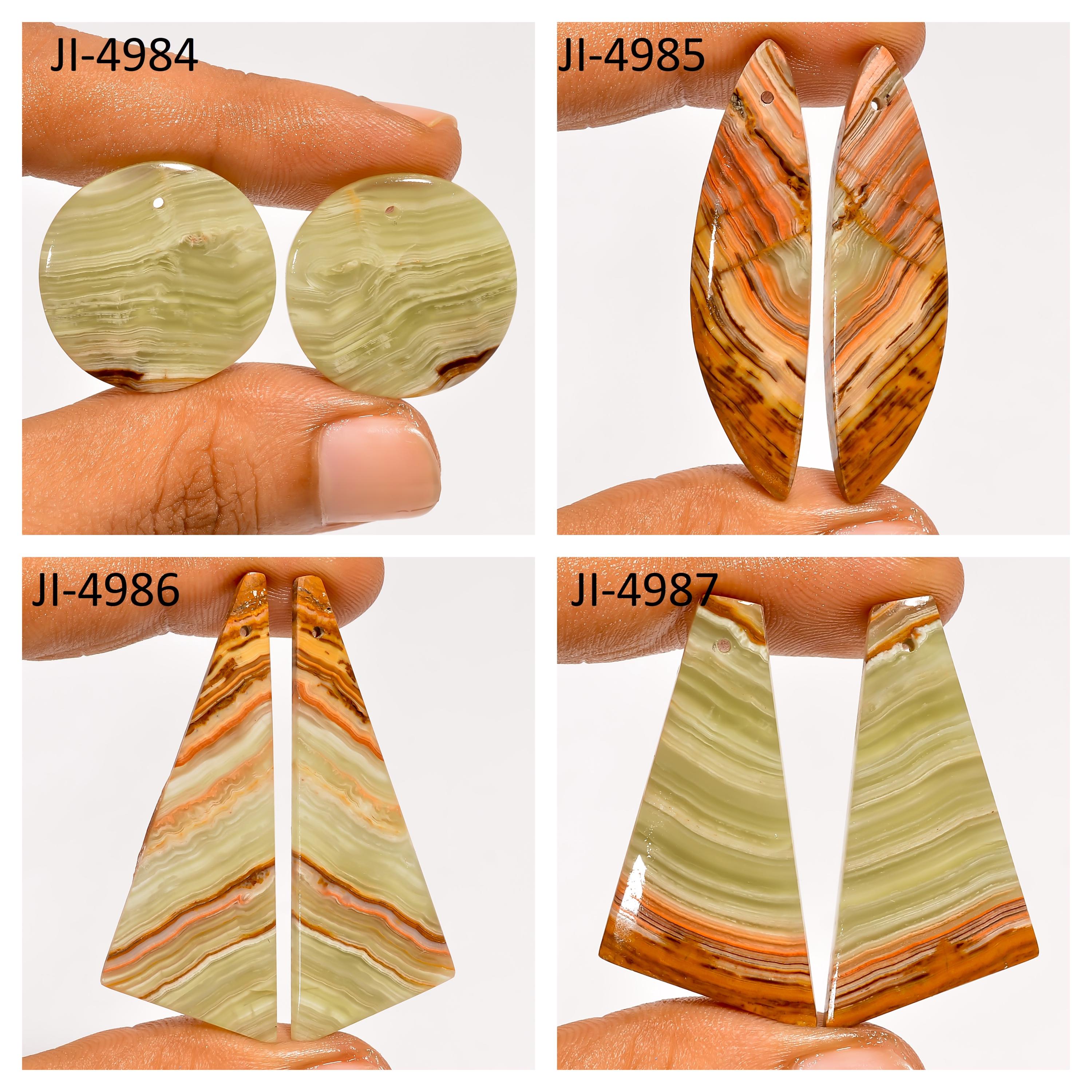 -Banded Calcite fancy shape drilled cabochon matching pairs-this listing is for a set of two cabochons-stones are flat on the back-Banded Calcite is a natural stone, no treatment