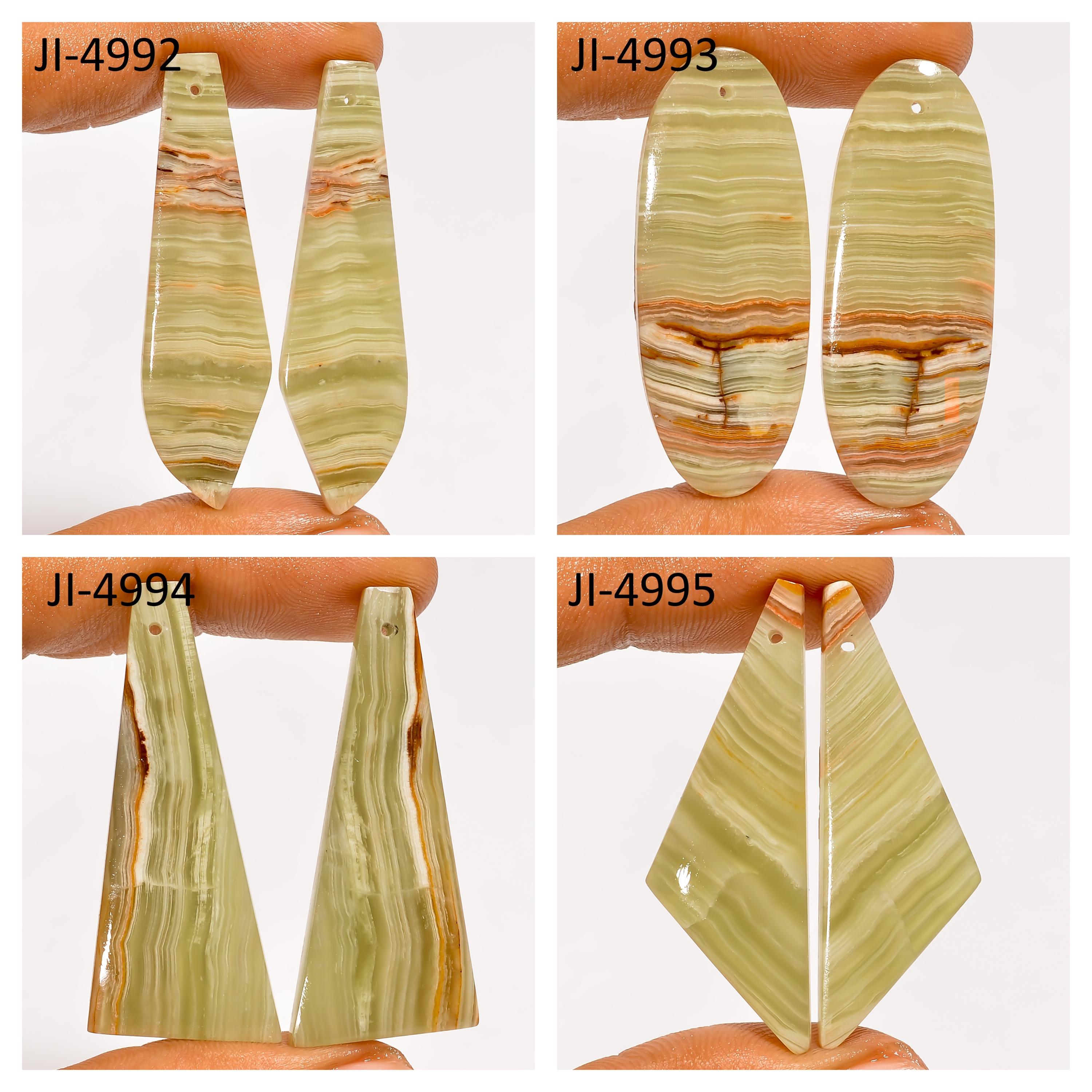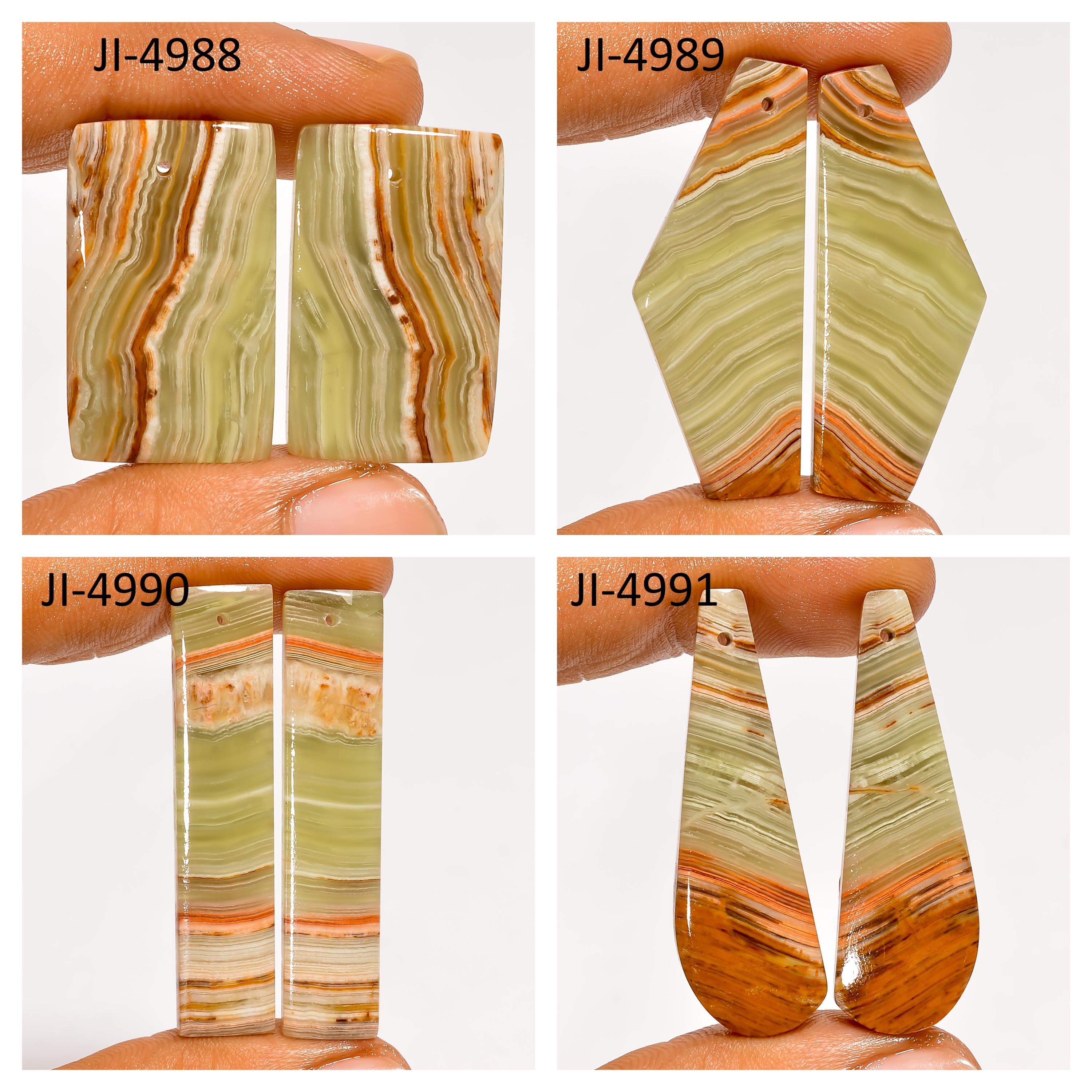 -Banded Calcite fancy shape drilled cabochon matching pairs-this listing is for a set of two cabochons-stones are flat on the back-Banded Calcite is a natural stone, no treatment