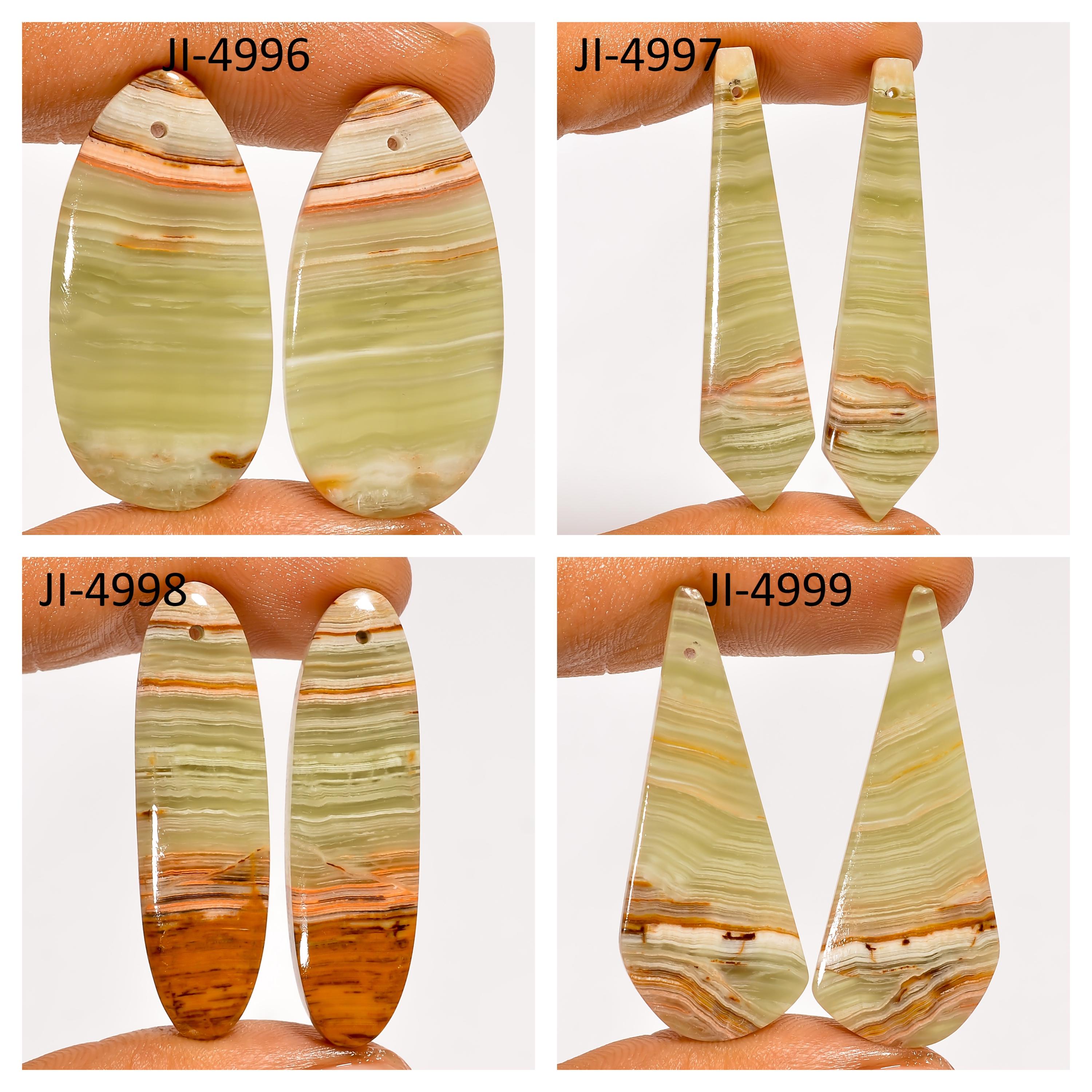 -Banded Calcite fancy shape drilled cabochon matching pairs-this listing is for a set of two cabochons-stones are flat on the back-Banded Calcite is a natural stone, no treatment