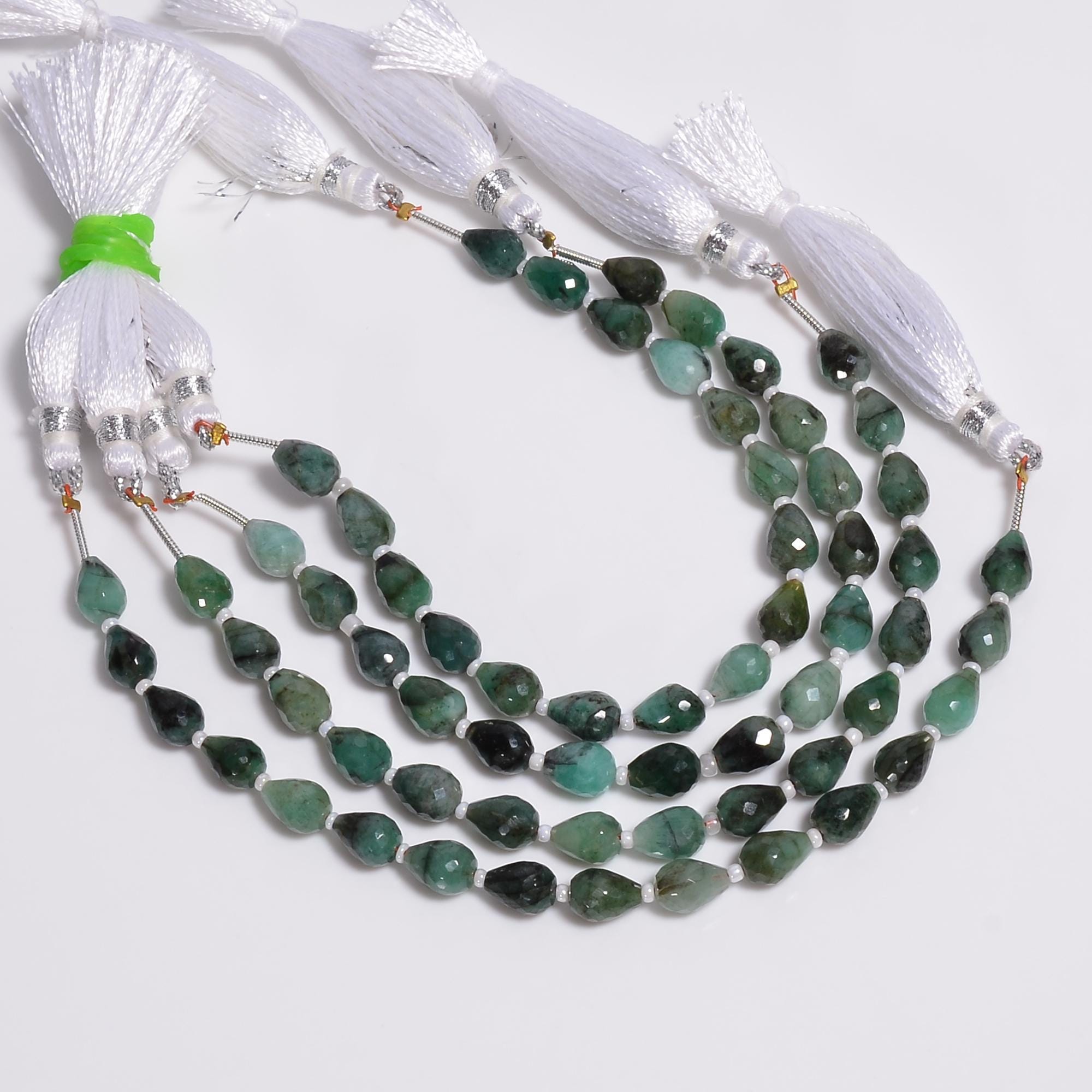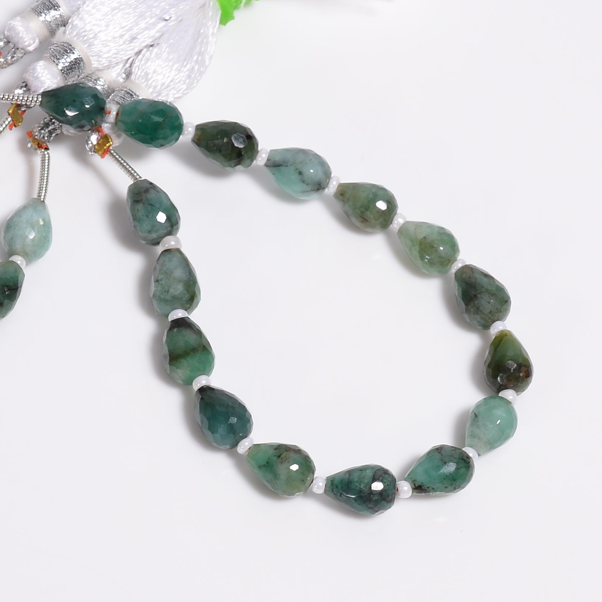 -Emerald faceted teardrop shape-bead size is 6mm x 8mm-hole size of bead is about .30mm-strand length is 6 inches-about 16 beads per strand-this listing is for one strand-Emerald is a natural stone, no treatment