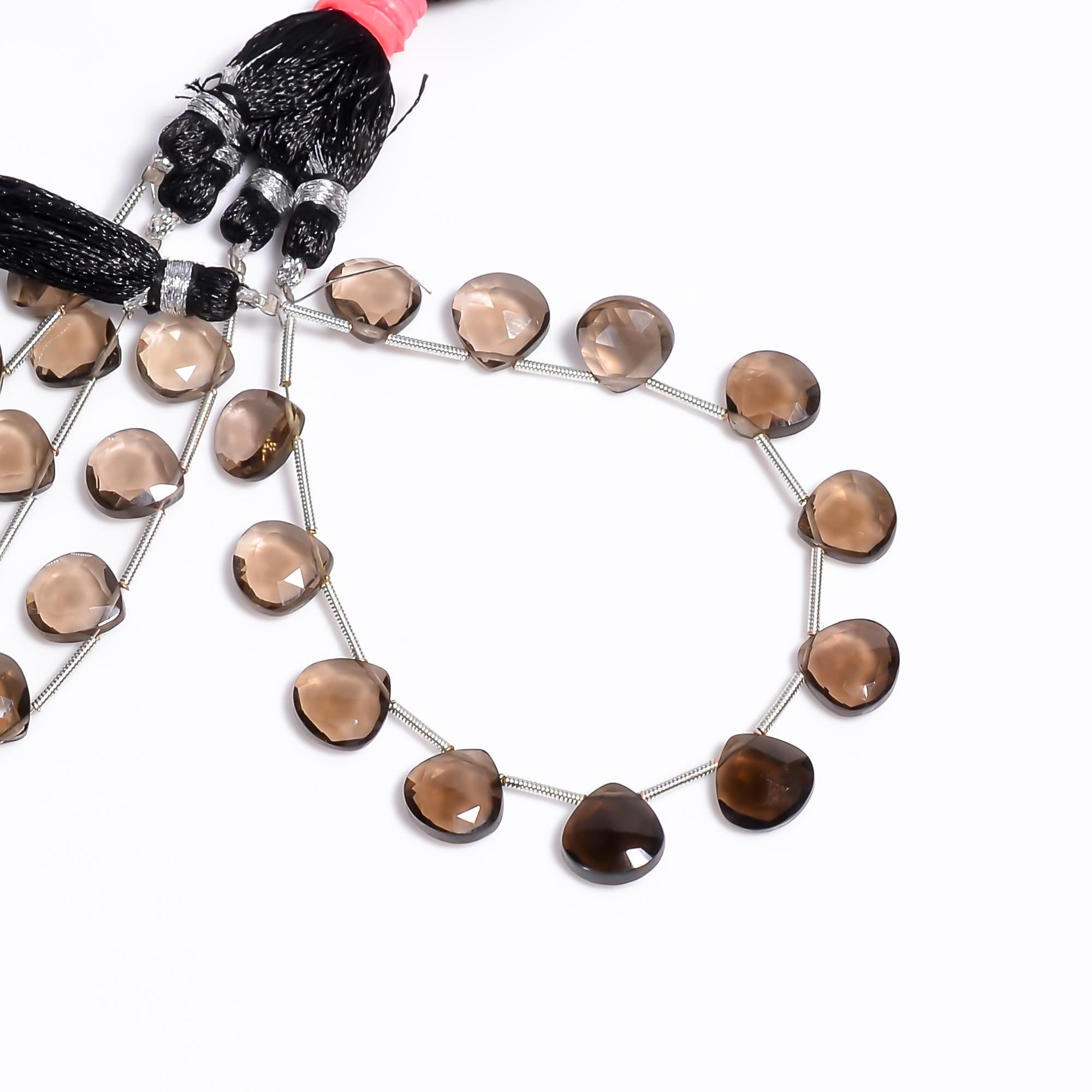 -Smoky Quartz faceted heart shape briolette