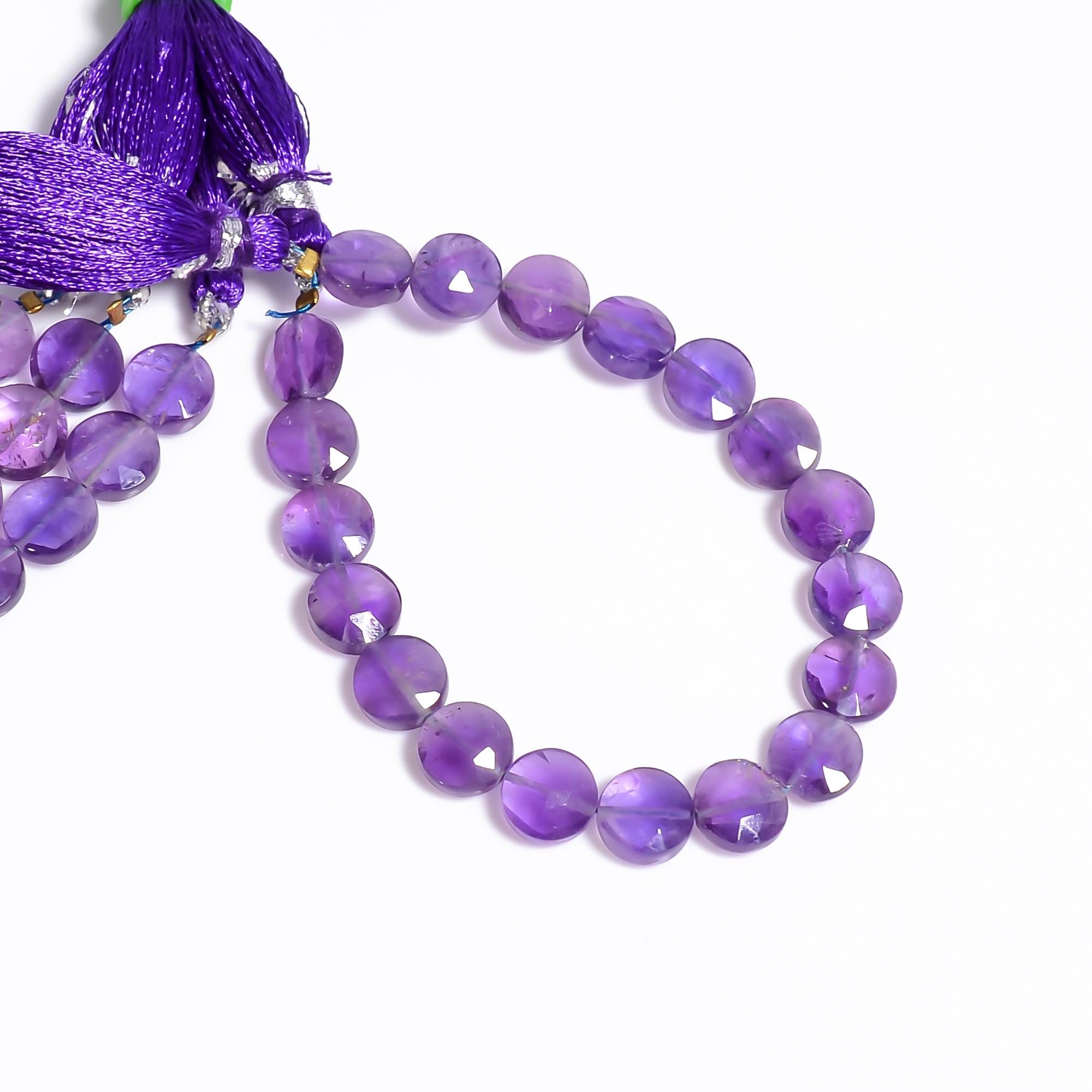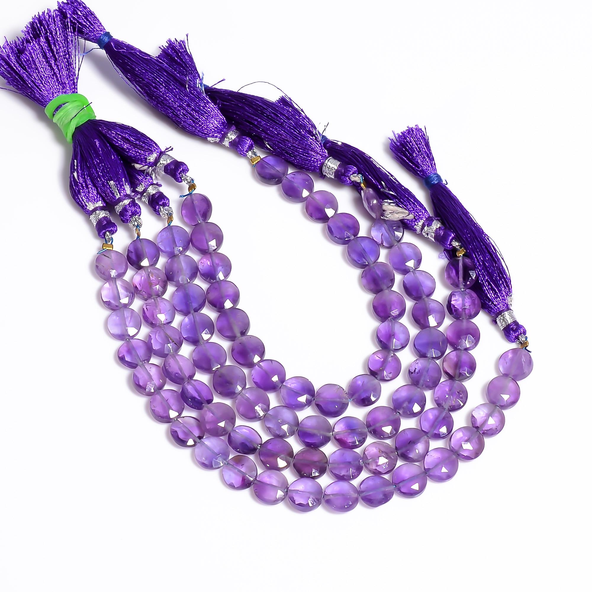 -Amethyst faceted coin shape-bead size is from 8mm to 8.50mm-hole size of bead is about .40mm-strand length is 6 inches-this listing is for one strand-Amethyst is a natural stone, no treatment