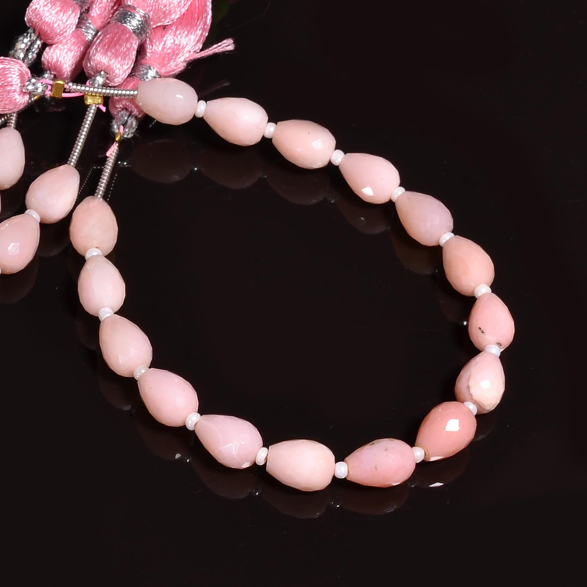 -Pink Opal faceted teardrop shape-bead size is 6mm x 8mm-hole size of bead is about .30mm-strand length is 6 inches-16 beads per strand-this listing is for one strand-Pink Opal is a natural stone, no treatment