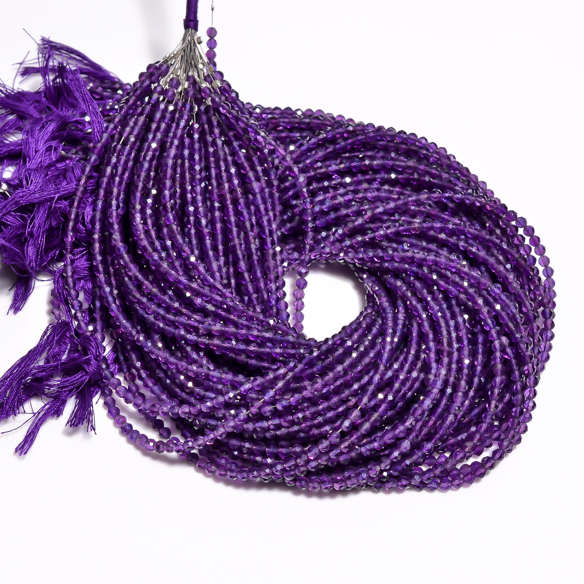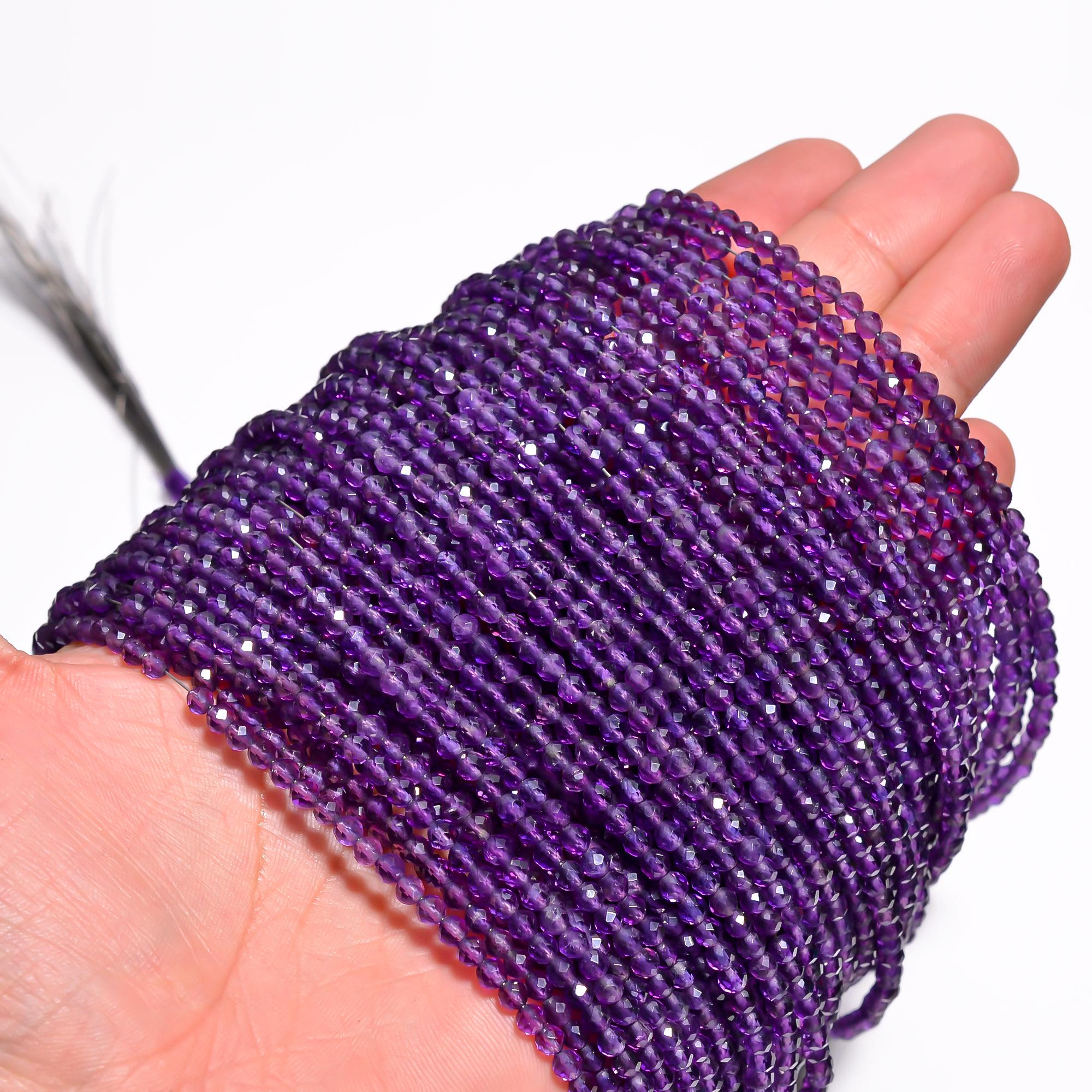 -Amethyst faceted round shape-bead size is from 3.45mm to 3.55mm-hole size of bead is about .50mm-strand length is 13 inches-this listing is for one strand-Amethyst is a natural stone, no treatment