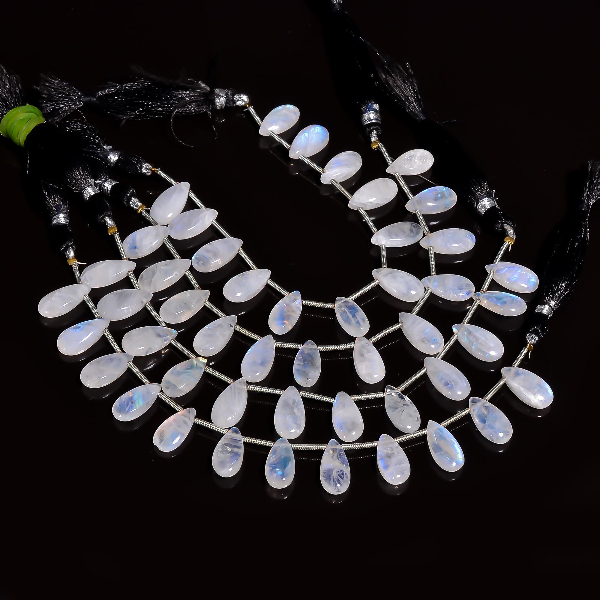 -Rainbow Moonstone non-faceted pear shape briolette